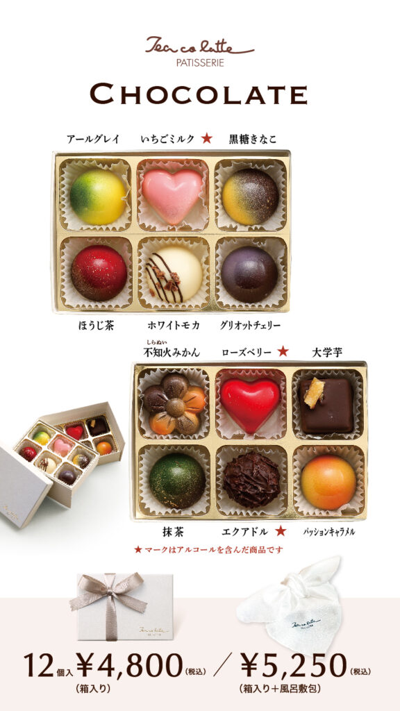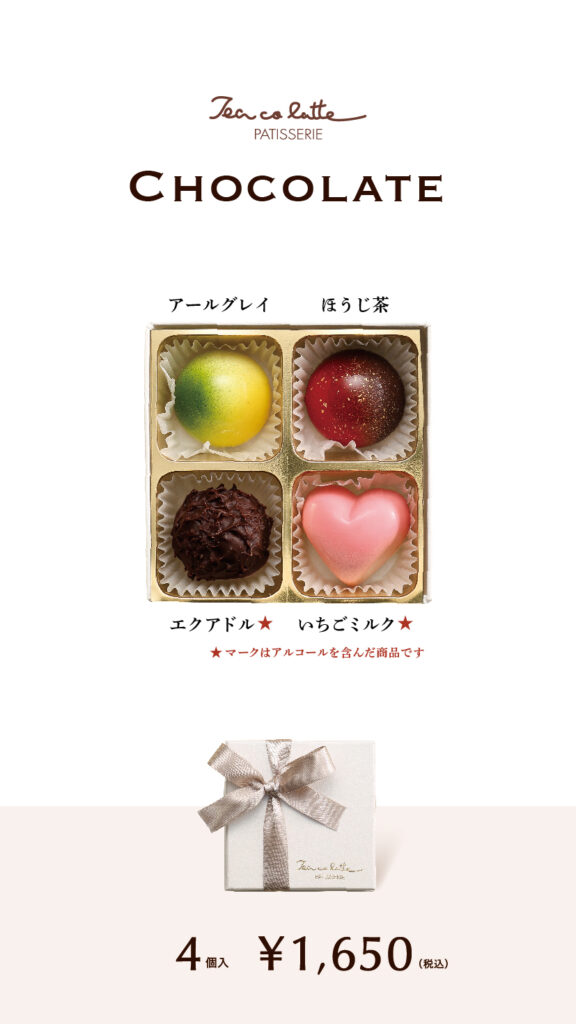 チョコレートは職人が一つ一つ心を込めて、tea co latte 店内工房にてお作りしております。