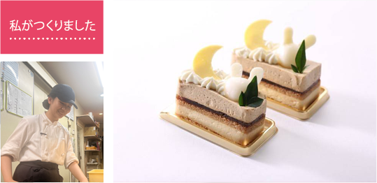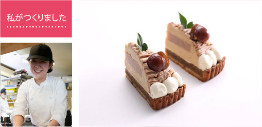 ほうじ茶のタルトに栗餡のクリームとほうじ茶のムースで覆いました。ほうじ茶のモンブランタルトほうじ茶と栗で秋をいっぱい感じるケーキです。